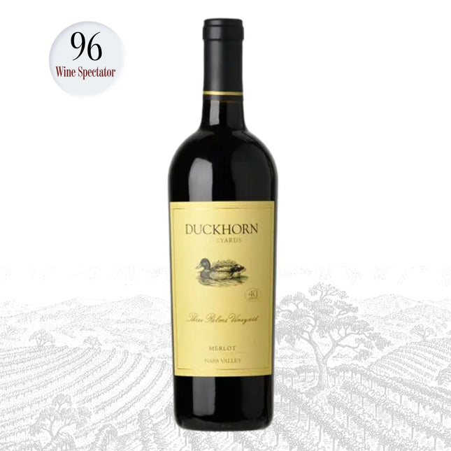 The 2017 Duckhorn Merlot Three Palms is a full-bodied, elegant Merlot with luxurious aromas of black cherry, plum, and cedar, complemented by notes of chocolate and spice. The palate is rich with red and black fruit, fig, and earthy iron notes, supported by a dense core of super-fine tannins and a long, complex finish. The rocky soil of the Three Palms Vineyard contributes a signature minerality and concentrated fruit, while the warm 2017 vintage provided ideal conditions for flavor and tannin development, resulting in a deeply flavored and sophisticated wine with a plush, round texture.